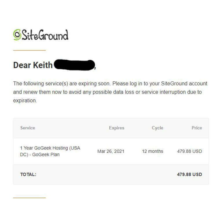As you can see by the email alert I received, the hosting renewal is yet again upon us. In years past, you folks have been very generous in helping meet our goals for renewals. While I’ve researched other host providers that offer introductory deals, ultimately — no one can match Siteground‘s outstanding customer service and cutting edge technology that stays relevant and up to date. Downtime for the site is virtually nonexistent and I’ve never found another host that can match their services for a shared hosting plan.